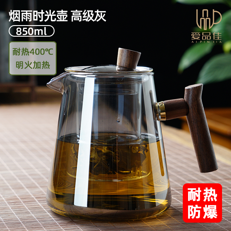 玻璃茶壶煮茶泡茶单壶家用茶水分离耐高温花茶茶具套装2025新款壶 烟雨时光壶850ml烟灰色
