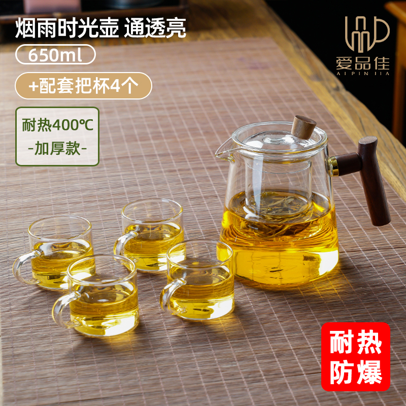 玻璃茶壶煮茶泡茶单壶家用茶水分离耐高温花茶茶具套装2025新款壶 烟雨时光壶650ml一壶四杯100ml通透亮