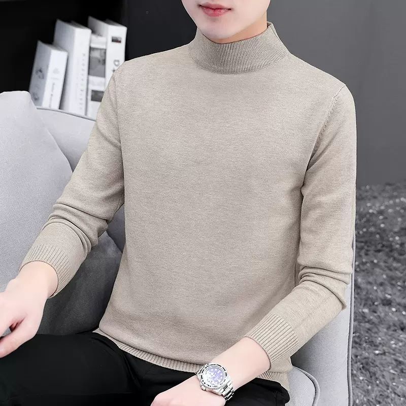 2023新款圆领毛衣男韩版秋冬季潮流内搭针织打底衫长袖黑色毛线衣_846 M推荐【90-110斤】 驼色【半高领】毛衣