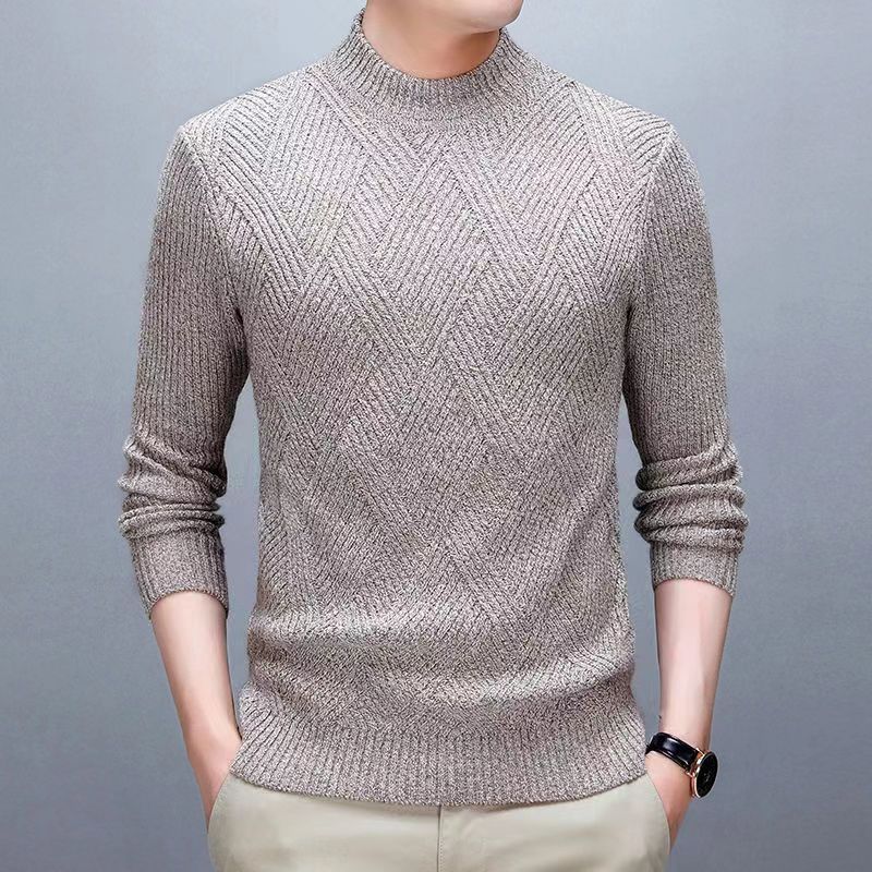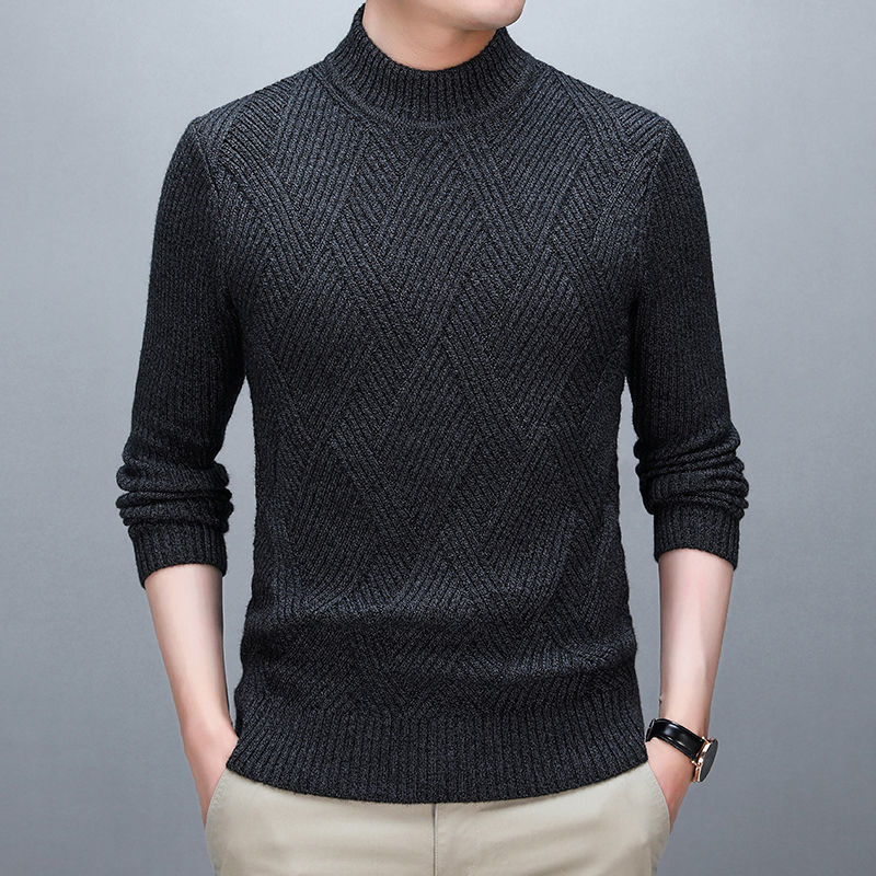 冬季半高领加厚毛衣男士新款韩版修身打底衫套头潮流针织衫毛线衣 M建议(90-120) 深灰色方块