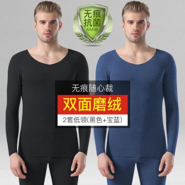 恒源祥男士保暖内衣加绒加厚无痕发热薄款秋衣裤秋裤套装冬季 【V领】黑色+宝蓝 165 M【无痕保暖AAA抗菌】