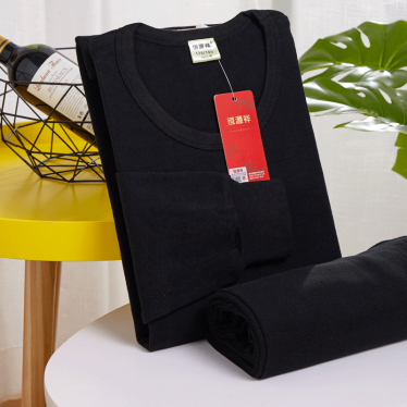 恒源祥正品秋衣秋裤男套装纯棉男士保暖内衣薄款全棉毛衫秋冬 黑色礼盒套装 170 L