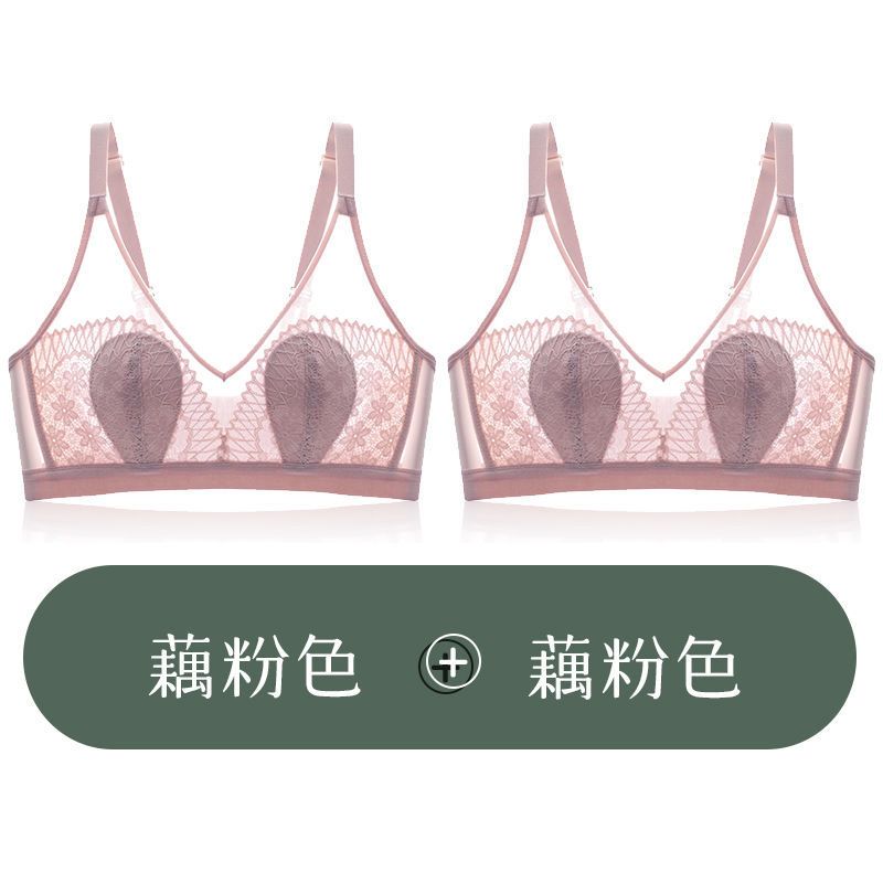 兔耳朵夏季超薄款内衣女无钢圈收副乳防下垂性感文胸女士胸罩套装_508 36/80B 藕粉色+藕粉色【2件装】