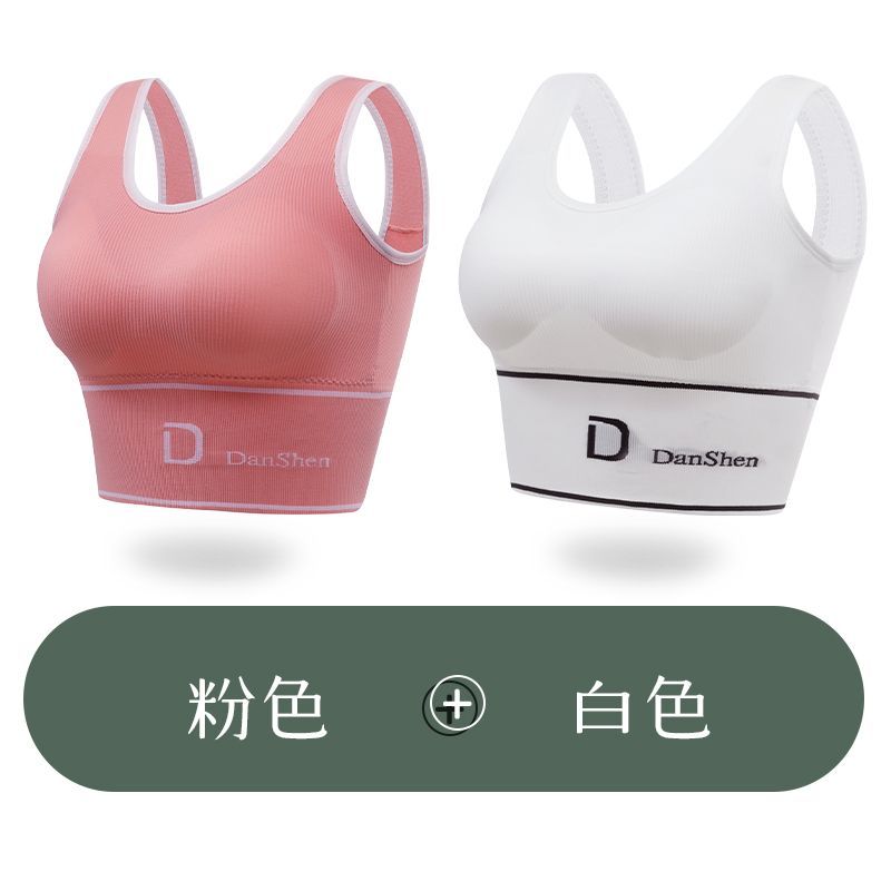 抹胸内衣女士学生跑步防震运动背心无钢圈小胸聚拢文胸_817 2XL标准码【140-160斤】 D两件装:粉色+白色