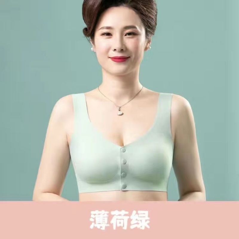 妈妈夏季冰丝内衣女聚拢防下垂上托文胸女士薄款中老年人胸罩 M【高品质】80-100斤 薄荷绿【单件体验装】