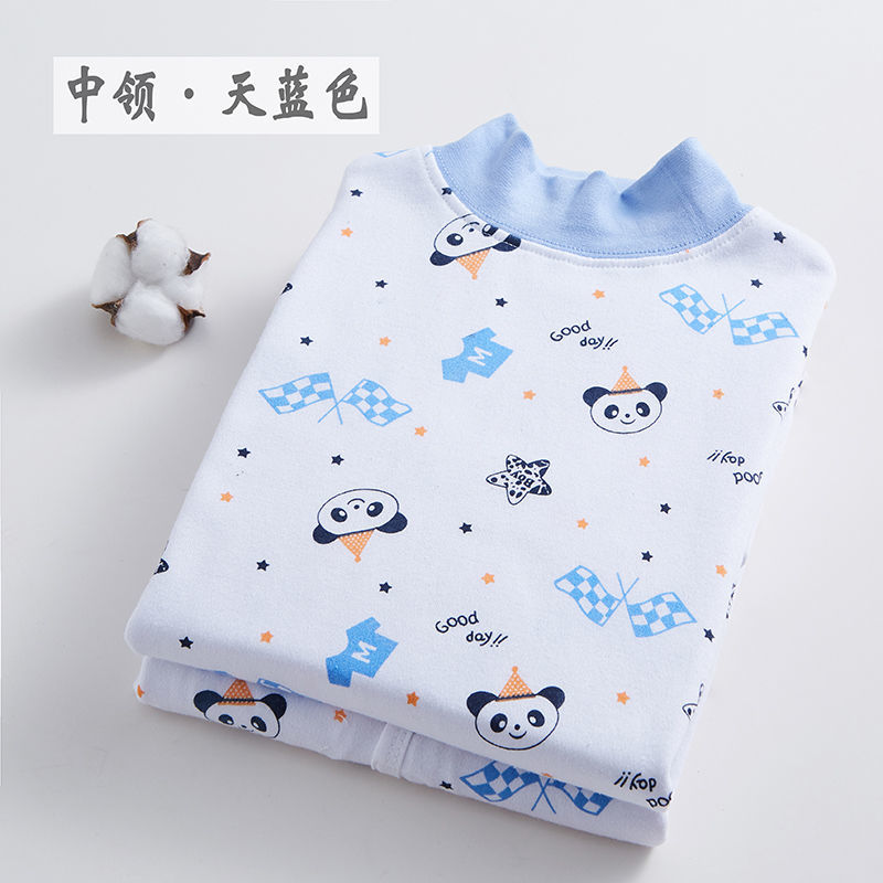 3-17岁儿童棉内衣套装男童女童中大童中圆领棉秋衣秋裤棉毛衫_816 60码/100身高(90-100) 天蓝色中领男童图案随机
