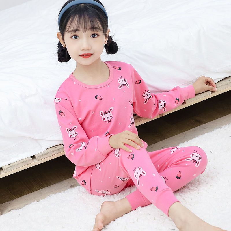 儿童内衣套装棉1-15岁男童秋衣秋裤长袖春秋冬女童睡衣中领_367 160码【身高148-158cm穿】 粉可爱兔-CFX/低领/纯棉