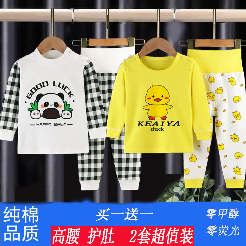 2套装儿童棉内衣秋衣秋裤秋衣套装男女童婴儿a类春秋款童装_538 110适合28-33斤 2套装-方格熊猫+黄鸭高腰