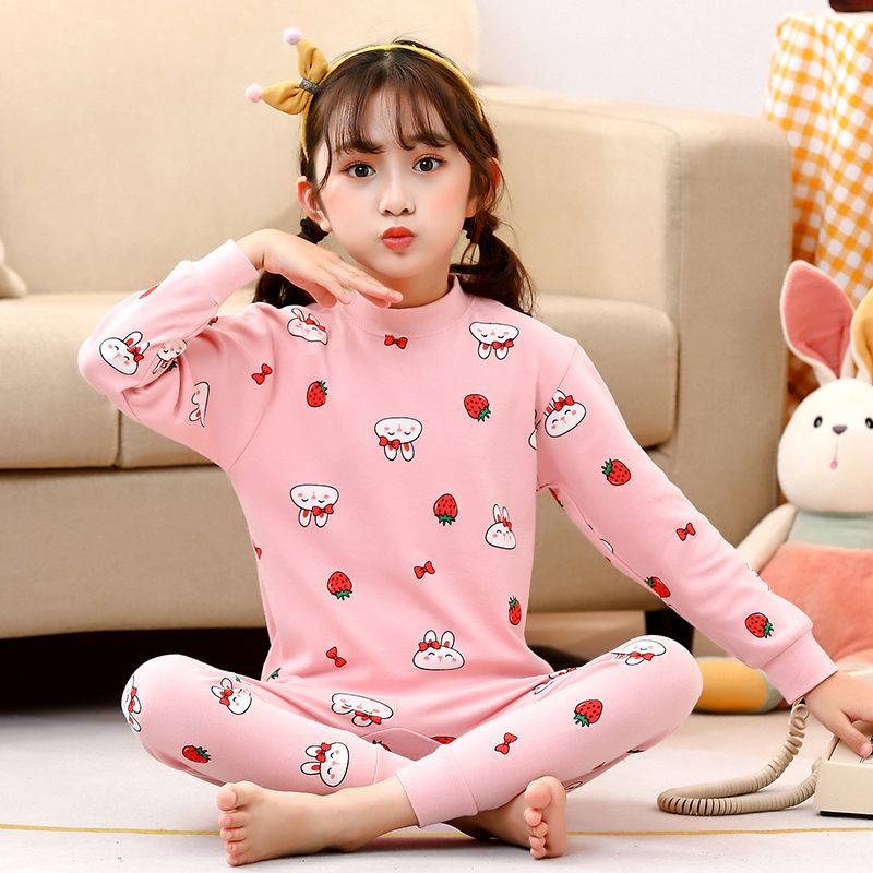 儿童内衣套装棉1-15岁男童秋衣秋裤长袖春秋冬女童睡衣中领_367 110码【身高98-108cm穿】 草莓兔/中领/纯棉