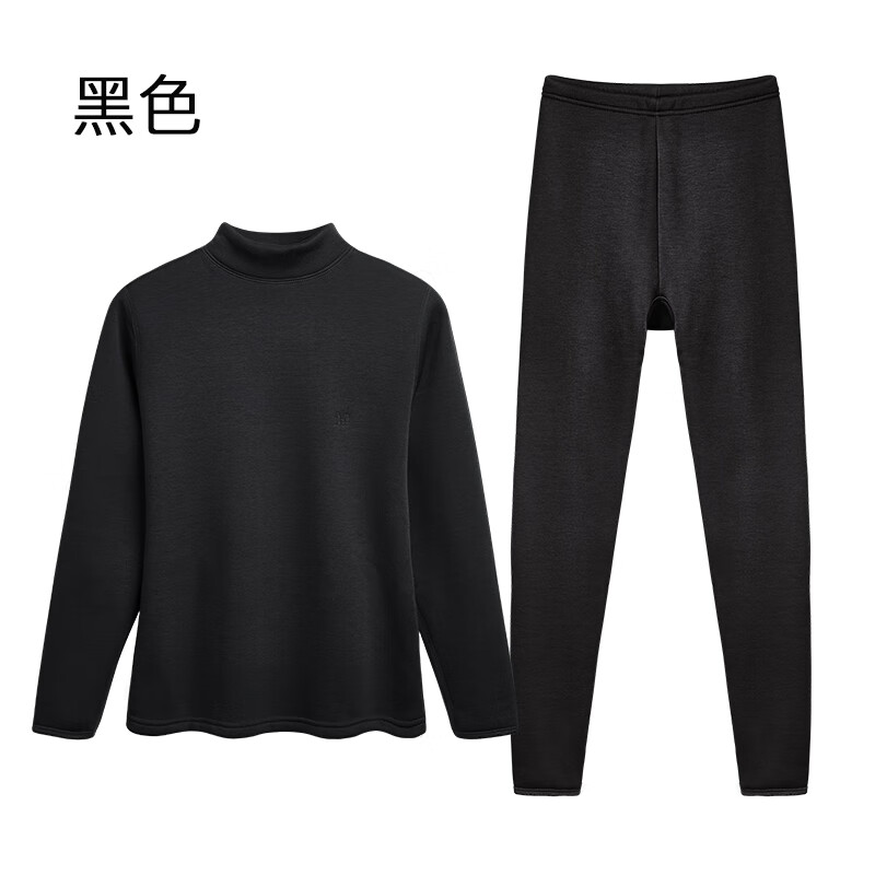 恒源祥德绒女士加绒加厚保暖内衣套装秋冬无痕秋衣秋裤套装打底衫_985 160(M) 中高领黑色