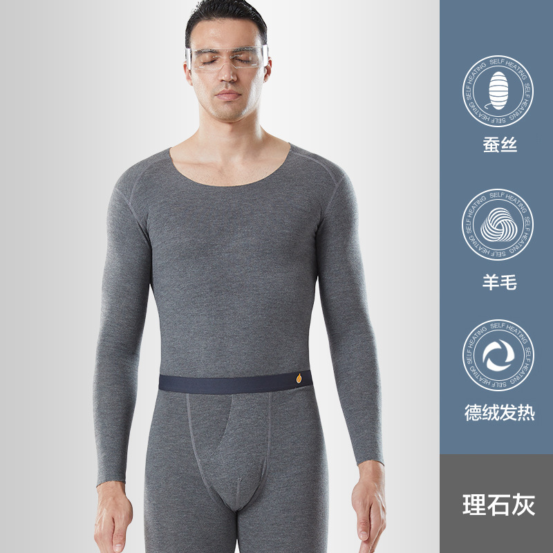 恒源祥德绒发热保暖内衣男士无痕打底秋衣秋裤含羊毛套装冬季_468_570 180/XXL 羊毛蚕丝/德绒发热【男款】理石灰