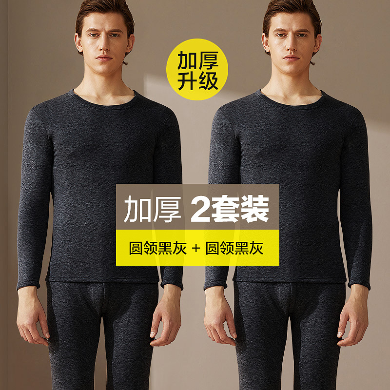 恒源祥德绒加厚男士无痕保暖内衣套装发热冬季内穿打底秋衣秋裤男_219 180(2XL) 加厚升级款-圆领(黑灰+黑灰)
