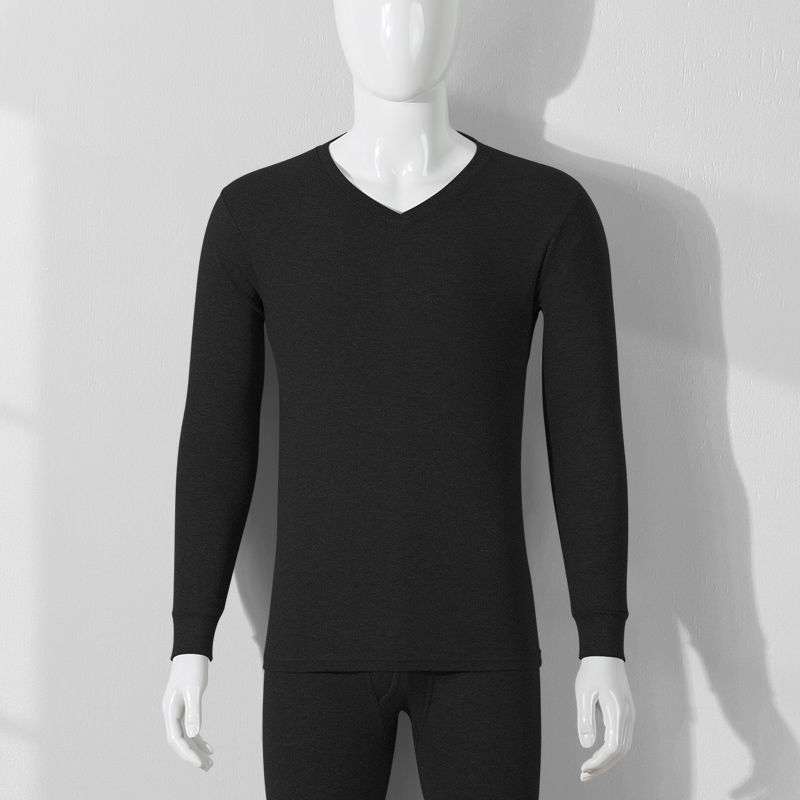 恒源祥100%纯棉男士纯棉秋衣秋裤男保暖内衣薄款中青年内衣套装潮_350 175/XL 黑色