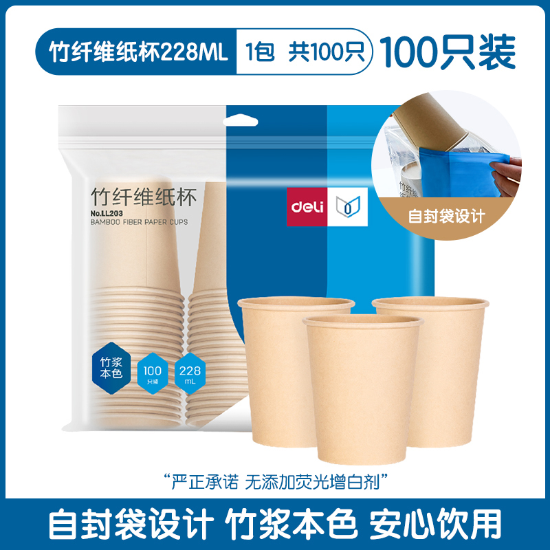 一次性杯子加厚纸杯100只家用办公室喝水杯子年货咖啡杯茶杯 100只228ml性价比推荐竹纤维纸杯-100只装