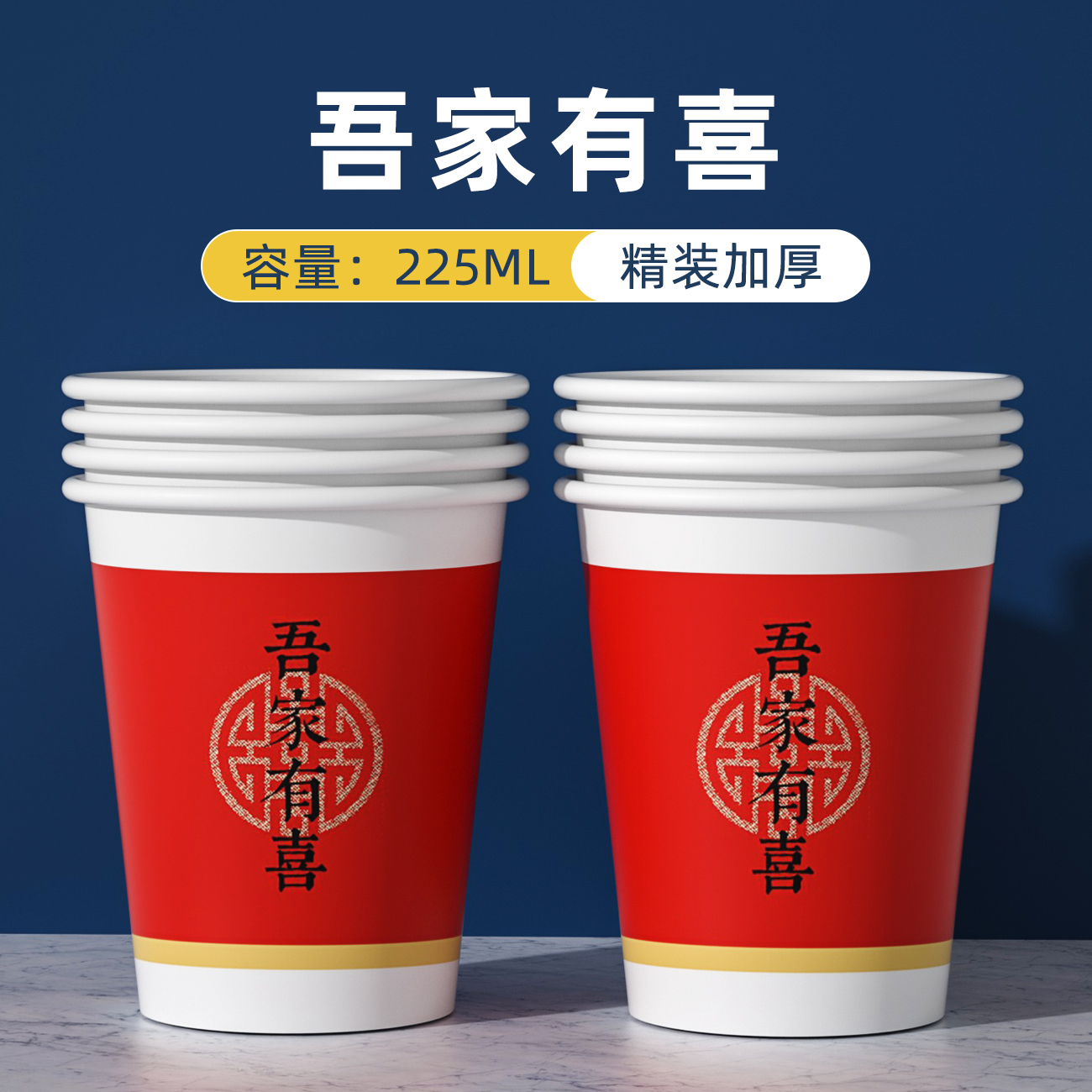 一次性杯子整箱批发加厚纸杯 家用商用水杯纸杯子咖啡热饮杯茶杯 225ML加厚吾家有喜500只