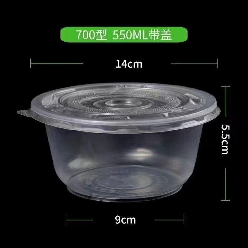 一次性碗餐盒打包盒餐具饭盒快餐家用商用外卖圆形带盖食品级家用 700型圆碗带盖100套