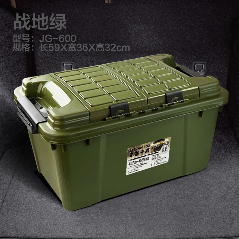 后备箱储物箱汽车载收纳箱车内置物整理收纳盒车用装饰品大全神器_129_706 双盖战地绿