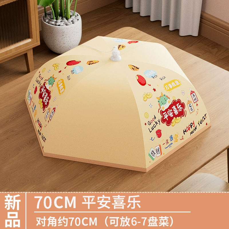 盖菜罩家用饭菜罩遮尘防苍蝇神器剩菜罩食物罩可折叠餐桌罩防尘罩 平安喜乐70cm加厚保温层可盖6-7盘菜 均码