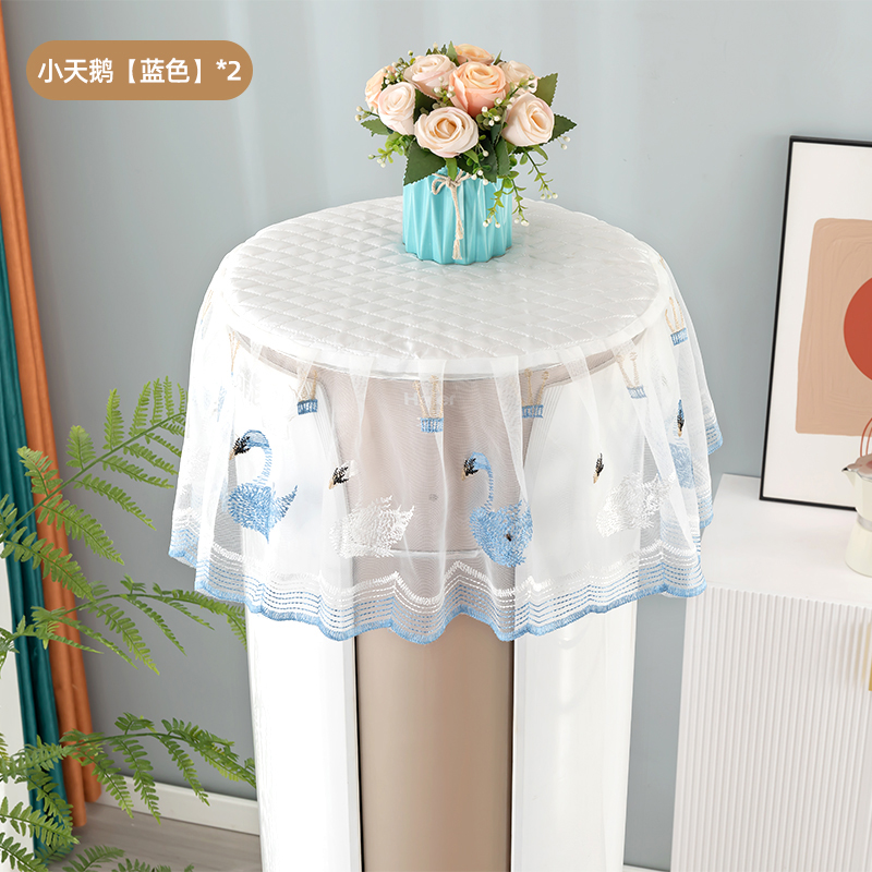 空调防尘罩圆蕾丝刺绣通用圆柜机顶罩简约田园客厅立式空调盖布 小天鹅蓝色买一送一 圆柱盖巾--柜机通用