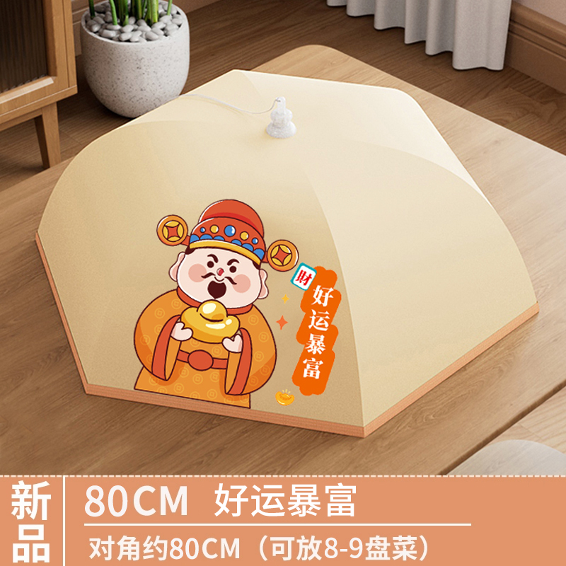 盖菜罩家用饭菜罩遮尘防苍蝇神器剩菜罩食物罩可折叠餐桌罩防尘罩 好运暴富80cm加厚保温层可盖8-9盘菜 均码