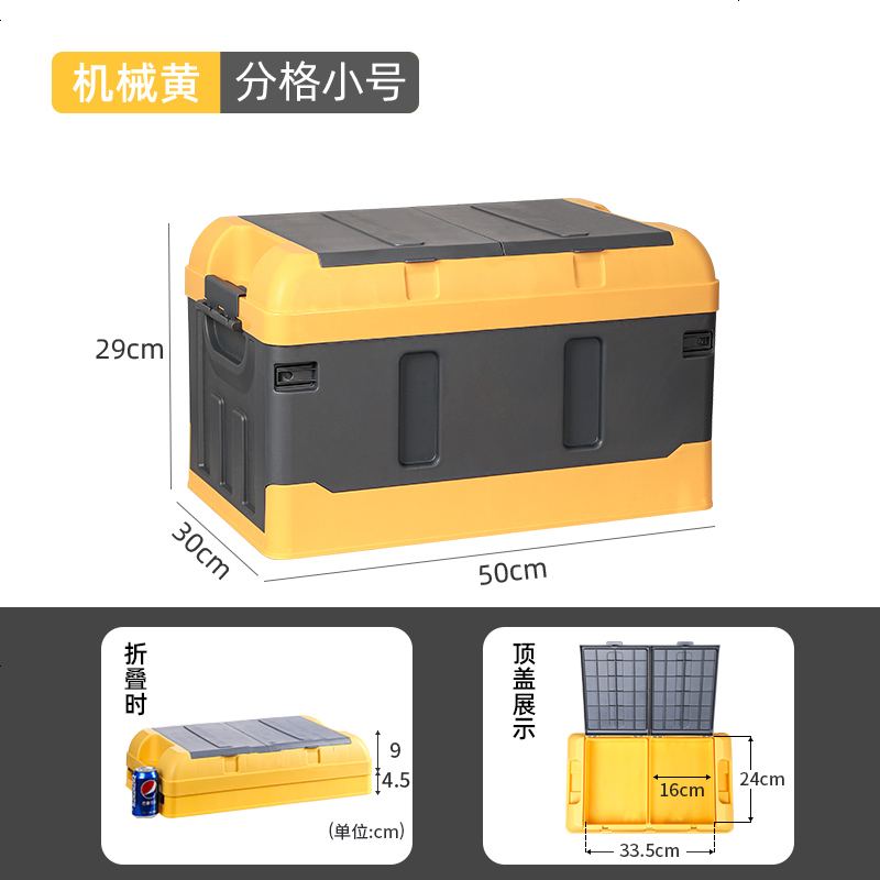 车载可折叠收纳箱汽车后备箱储物箱车用置物盒整理箱多功能网红款_198_324 分格小号加厚45L【机械黄】_一个