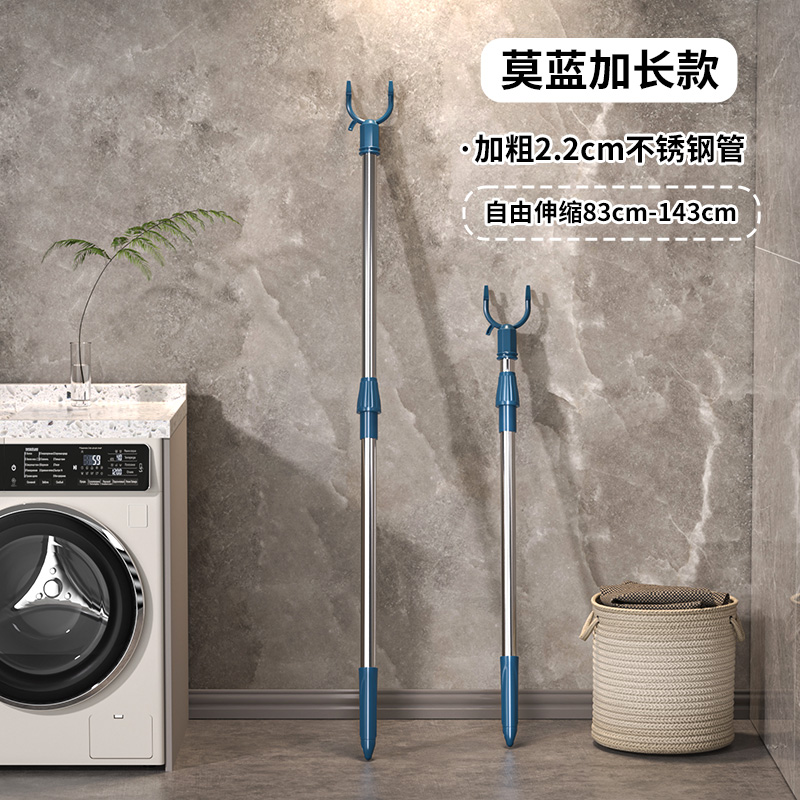 衣架晾衣杆撑衣杆家用伸缩晾衣杆一根叉丫晒衣服的衣架杆子凉取挑衣叉挂宿舍 雅青蓝-长款自由调节长度83-143cm