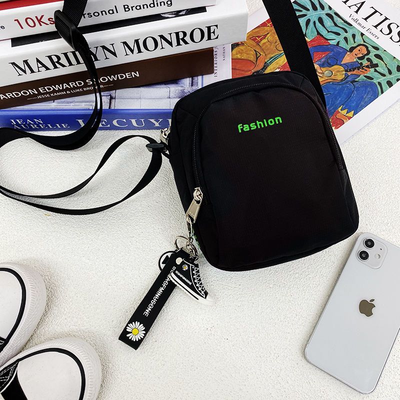 ins潮牌小挎包男士简约斜挎包女休闲日系轻便单肩斜跨手机包_892 绿色带潮鞋挂件