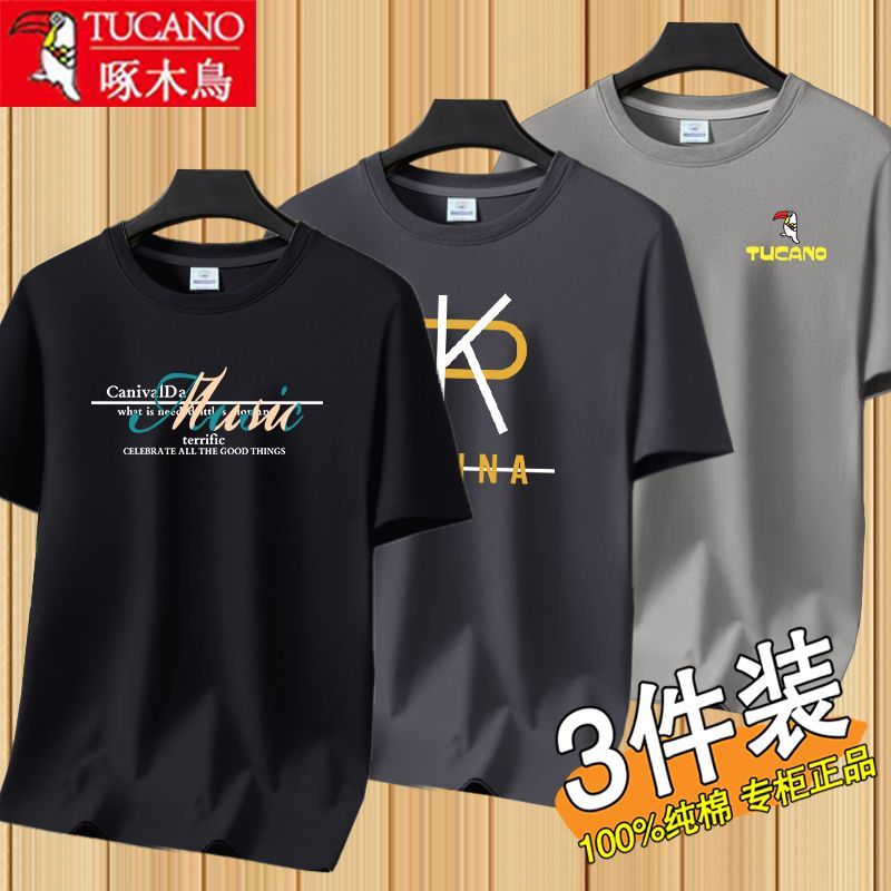 短袖T恤男士夏季新款潮牌潮流五分袖体恤棉打底衫上衣服_581 3XL【建议140-160斤】 【三件装】音符黑+PK灰+鸟卡其