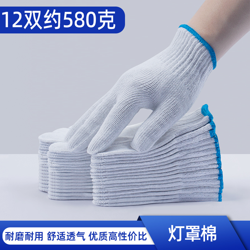 手套棉纱手套劳保耐磨工作加厚防滑纯白纱手套劳工透气手套男工地干活 800灯罩棉买60送60发120双 均码