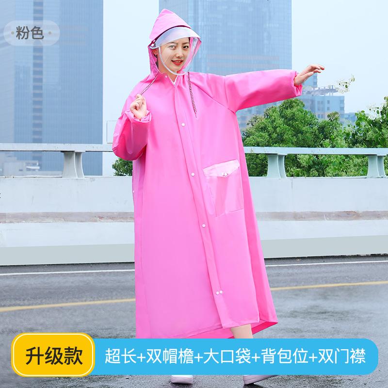 雨衣长款全身单人男女款时尚透明防暴雨电动电瓶车自行车成人雨披_494_943 L_粉色升级款【双帽檐+加长遮脚+背包位+拉链】