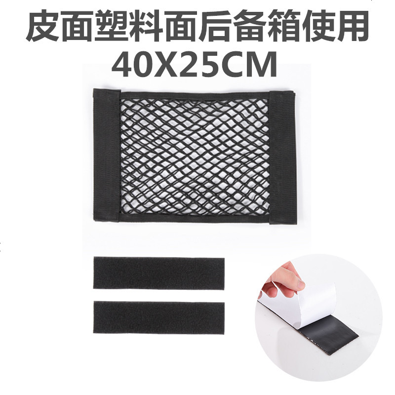 汽车魔术贴网兜车载后备箱收纳神器储物袋车用置物固定架车内用品 小号40CM双层网兜+背胶(皮面塑料面用)