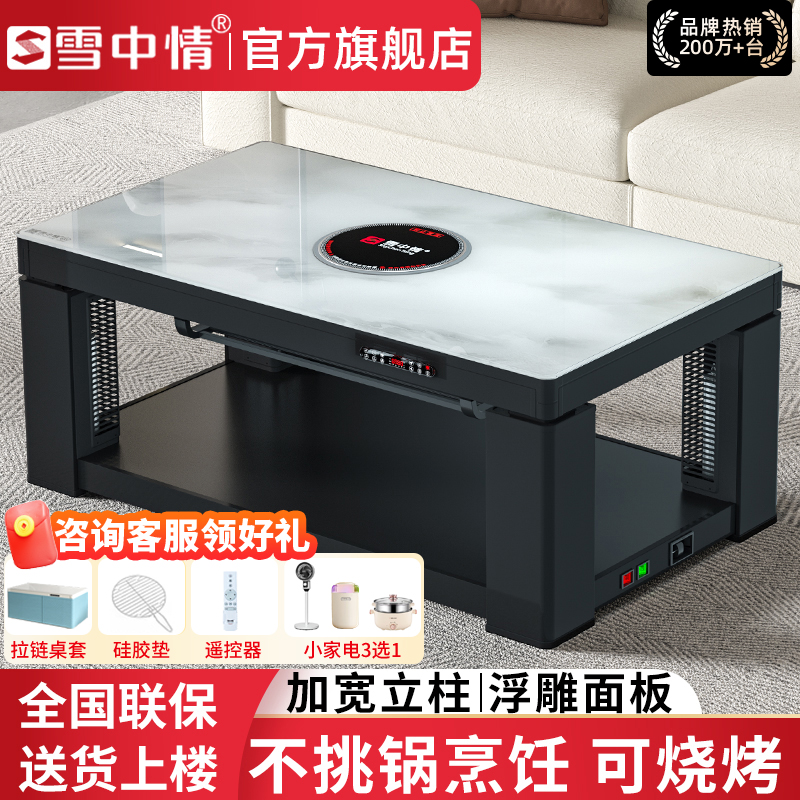 雪中情取暖桌电暖桌电暖炉烤火炉家用多功能升降茶几烤火桌电烤炉茶几一体电烤桌长方形家用客厅取暖桌Q25君临天下1.38米