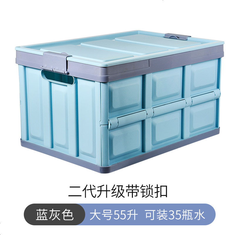 后备箱储物箱车载收纳箱车用置物整理箱车内尾箱汽车用品大全实用_209_543 热卖❤【升级带锁扣】-蓝灰色【大号】55升