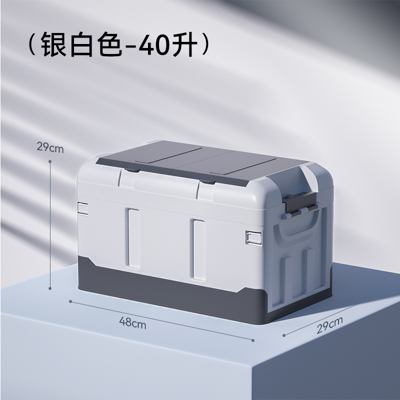 车载后备箱储物箱汽车户外收纳箱盒折叠尾箱整理箱神器实用品大全 【升级加厚】中号40升双盖银白色-带锁扣