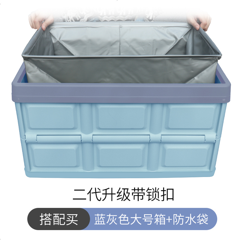 后备箱储物箱车载收纳箱神器车内尾箱置物整理盒汽车装饰用品大全 第二代带锁款-大号【55升】-蓝灰色+防水袋