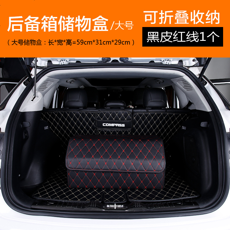 后备箱储物箱汽车收纳箱车载置物箱多功能折叠收纳箱尾箱整理杂物 黑色红线大号【升级高密度板一体款】【带中间隔板】