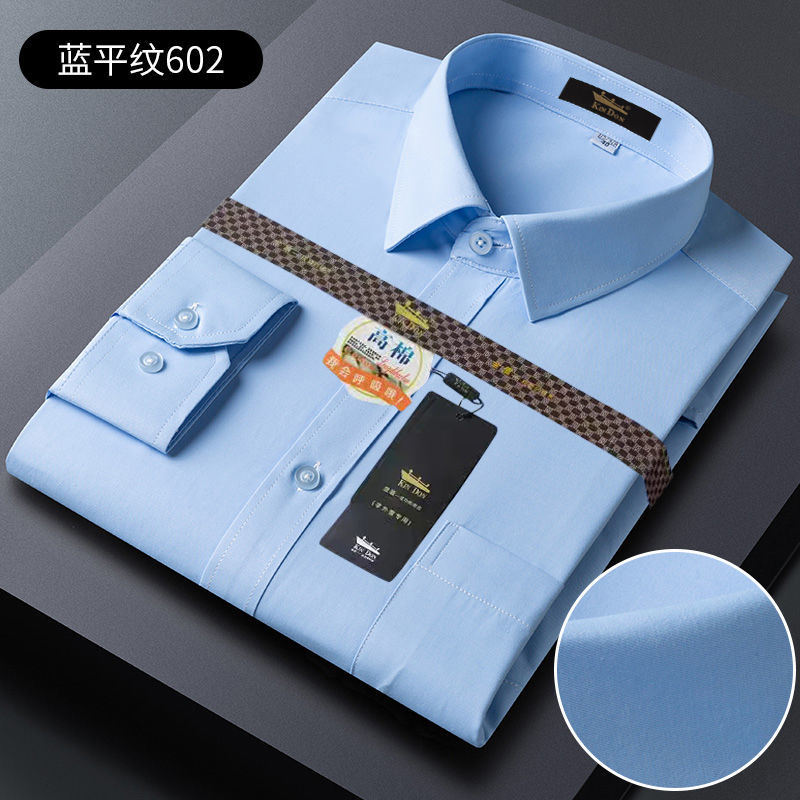 男士长袖衬衫商务职业正装白衬衫抗皱免烫纯色短袖衬衣男大码_360 43码【165-180斤】 蓝平纹【长袖】802