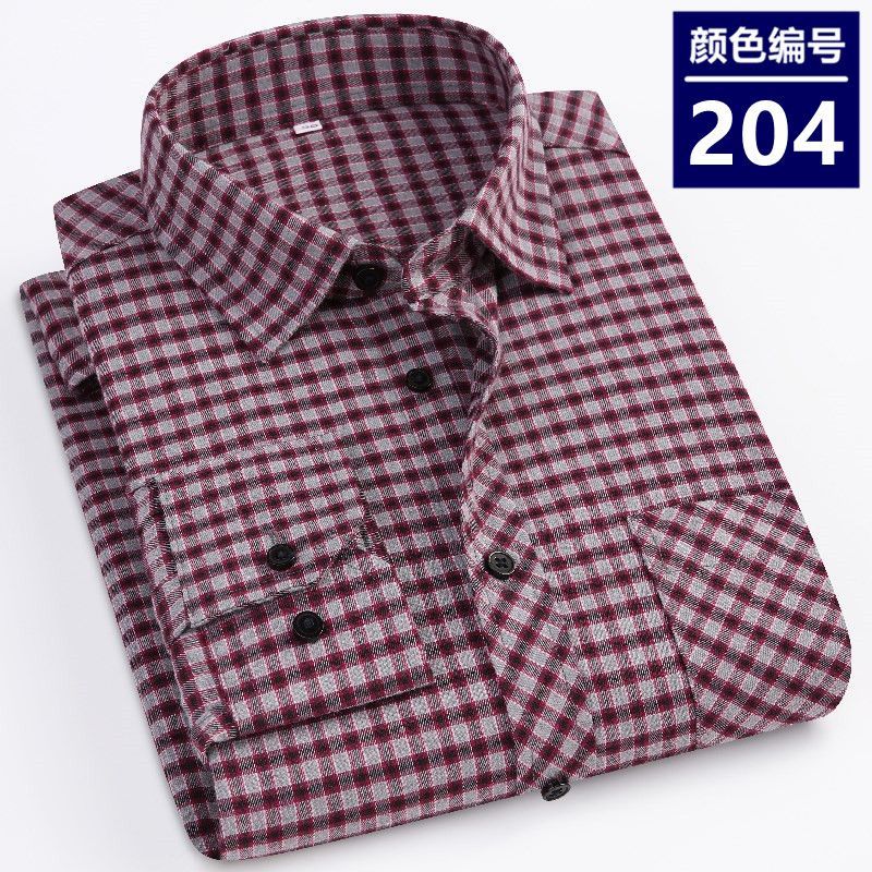 春秋男士棉衬衫免烫磨毛长袖格子中老年人棉宽松商务休闲衬衣 39(建议110-125斤) 204#【正品保证】