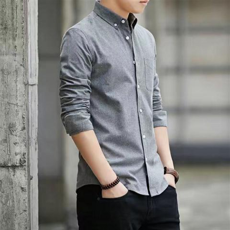 牛津纺白色衬衫男士长袖修身韩版休闲青年衬衣薄款男装春秋季_808 5XL建议【180斤以下穿】 961牛【单件】灰色