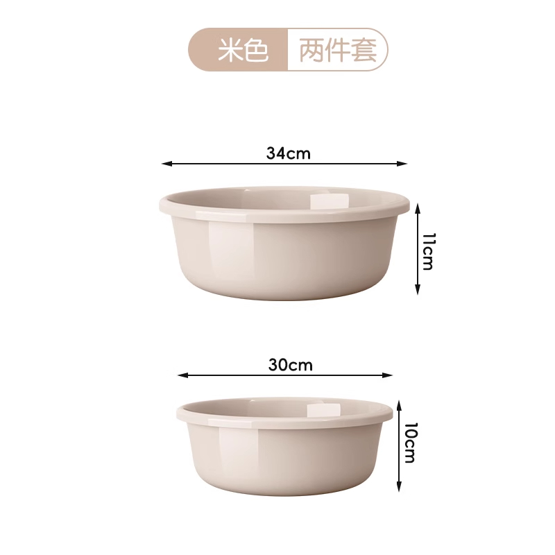 加厚塑料洗脸盆家用学生宿舍加大中小号洗衣盆面盆洗菜洗脚婴儿L1 加厚款大号+加大暖米色-2件套