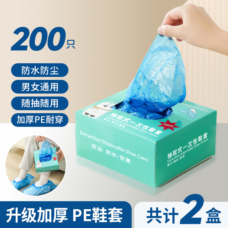 一次性鞋套无纺布家用加厚室内防水耐磨防滑机房学生待客塑料 收纳升级盒装塑料PE200抽防水防尘