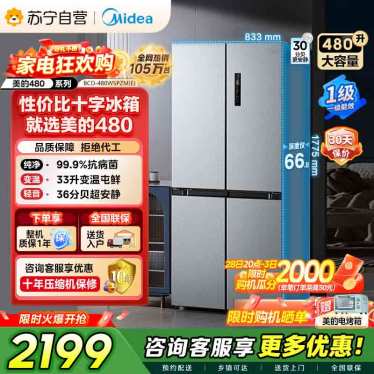 [自营]美的冰箱(Midea)480升十字对开冰箱一级智能双变频电冰箱双循环风冷无霜大容量BCD-480WSPZM(E)