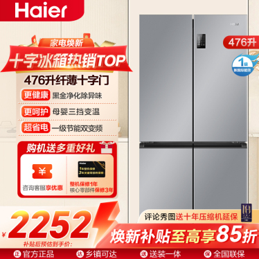 海尔冰箱BCD-476WGHTDEDXM 大容量超薄箱体 一级能效三档变温(零度、冰镇、母婴) 新品