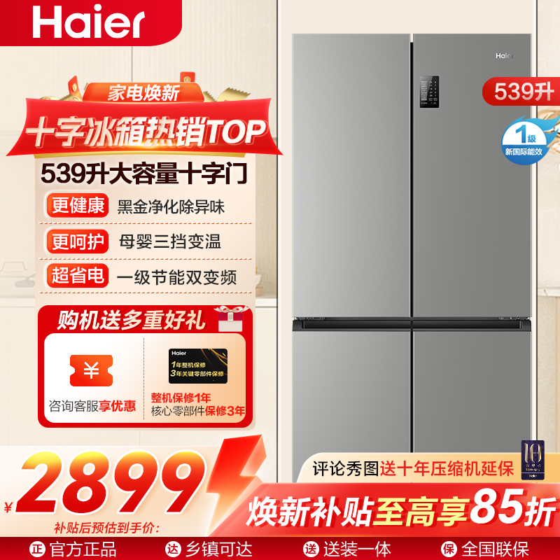 海尔冰箱BCD-539WGHTDEDH9U1 大容量三档变温黑金净化一级双变频WIFI智能联网旗舰新品