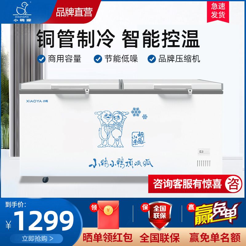 小鸭(xiaoya)冰柜商用卧式大容量冰箱家用冷藏冷冻保鲜铜管单双温超市冷柜-650旗舰款