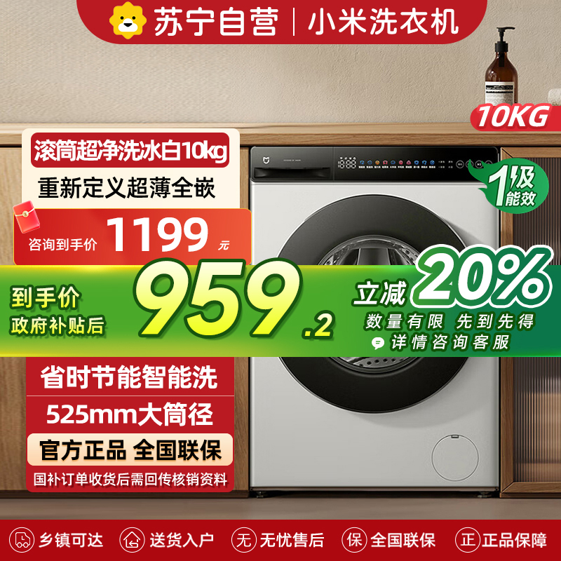 海尔滚筒洗衣机10公斤大容量,高颜值,尺寸大小合适,功能齐全,操作简单,物美价廉,苏宁易购平台电器靠谱!