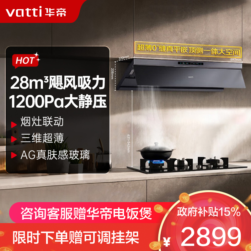 华帝(vatti)[小飞碟Max]28风量变频大吸力抽油烟机i11S66 超薄平嵌欧式顶侧一体 自清洁 烟灶联动油烟机