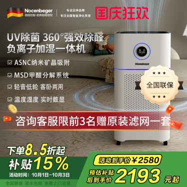 诺森柏格(Nocenbeger)空气净化加湿净化一体机除甲醛UV除菌除二手烟异味负离子深度净化净化器D7Pro