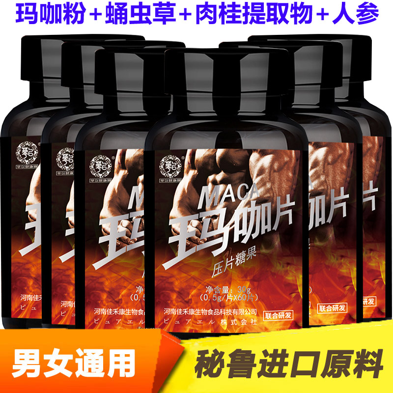 秘鲁进口玛卡原料浓缩玛咖压片糖果60片6瓶高含量maca人参肉桂蛹虫草玛咖片干片男女成人中青年人中老年人滋补品营养品正品