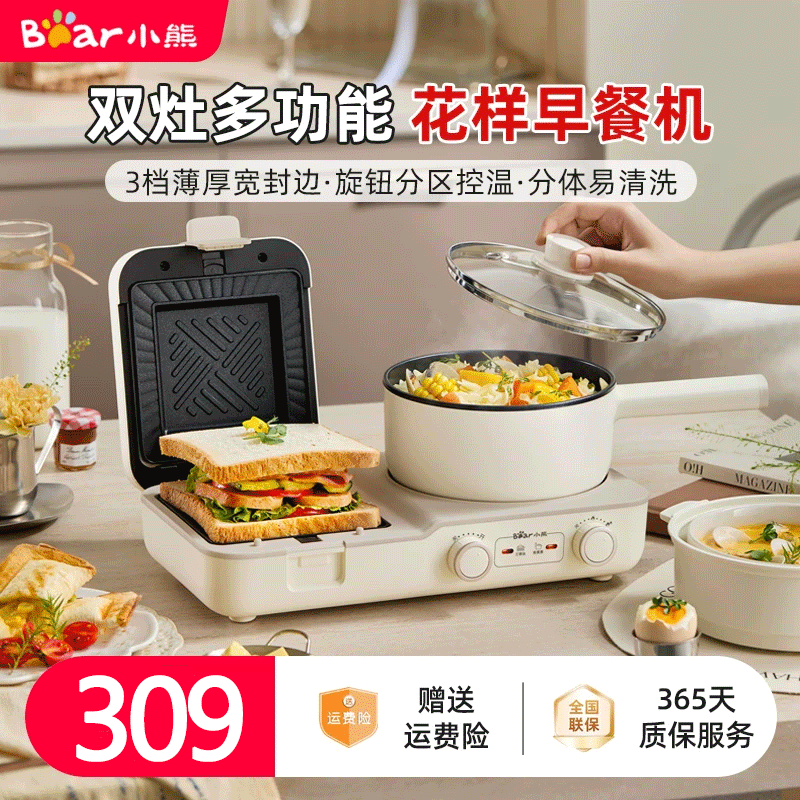小熊(bear)早餐机三明治机电饼铛多士炉多功能料理锅DSL-L01H1